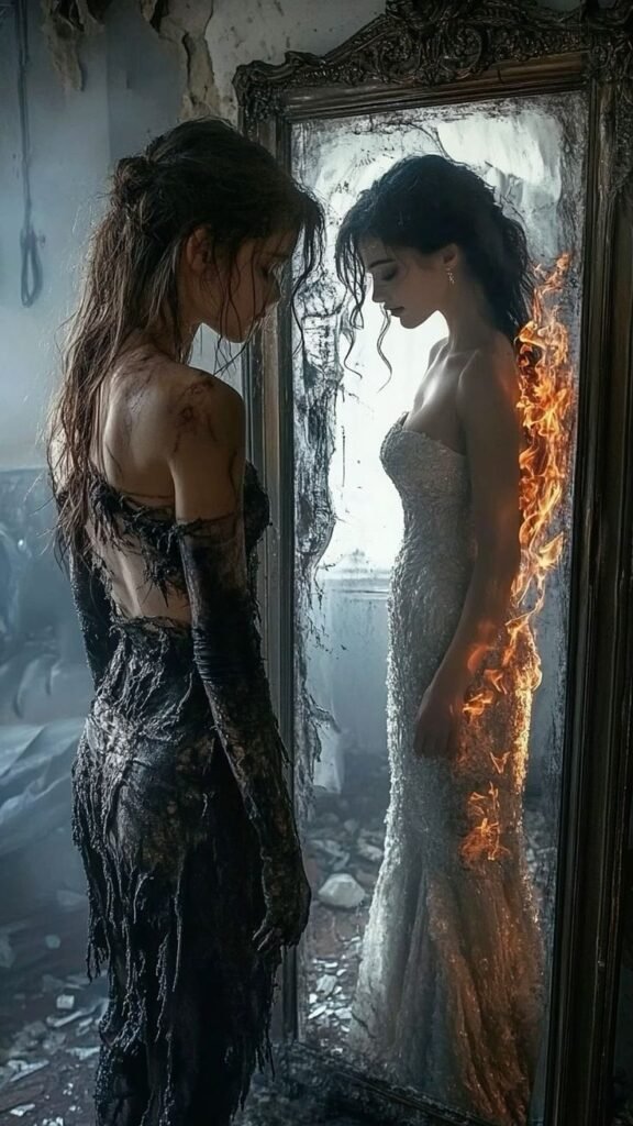 Dark Reflection Mirror Portrait AI Prompt – Cinematic Moody Photo Editing Guide