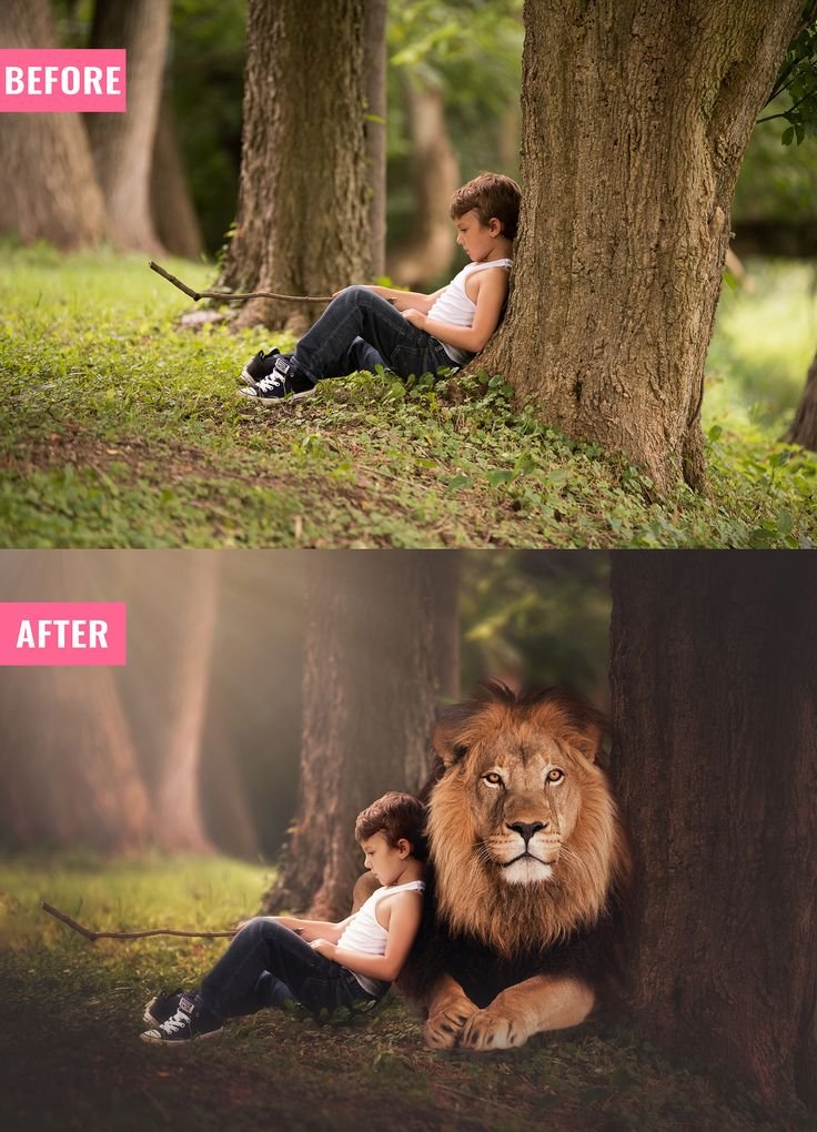 Fantasy Photo Manipulation Before After Tutorial: Realistic Lion Composite Edit
